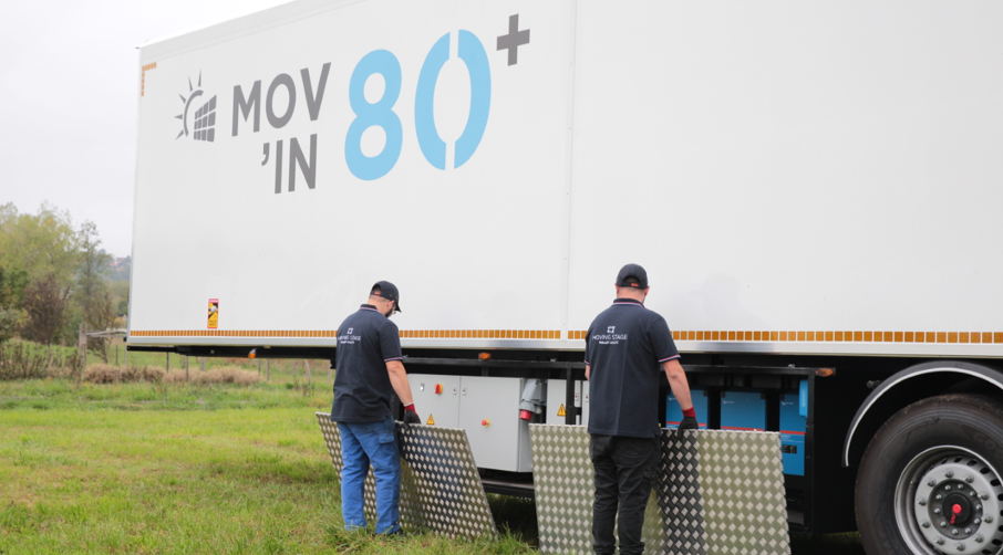 Une séquence d’opérations permettra de transformer efficacement la remorque ou la semi-remorque en une scène mobile intégrant tous les éléments de montage.